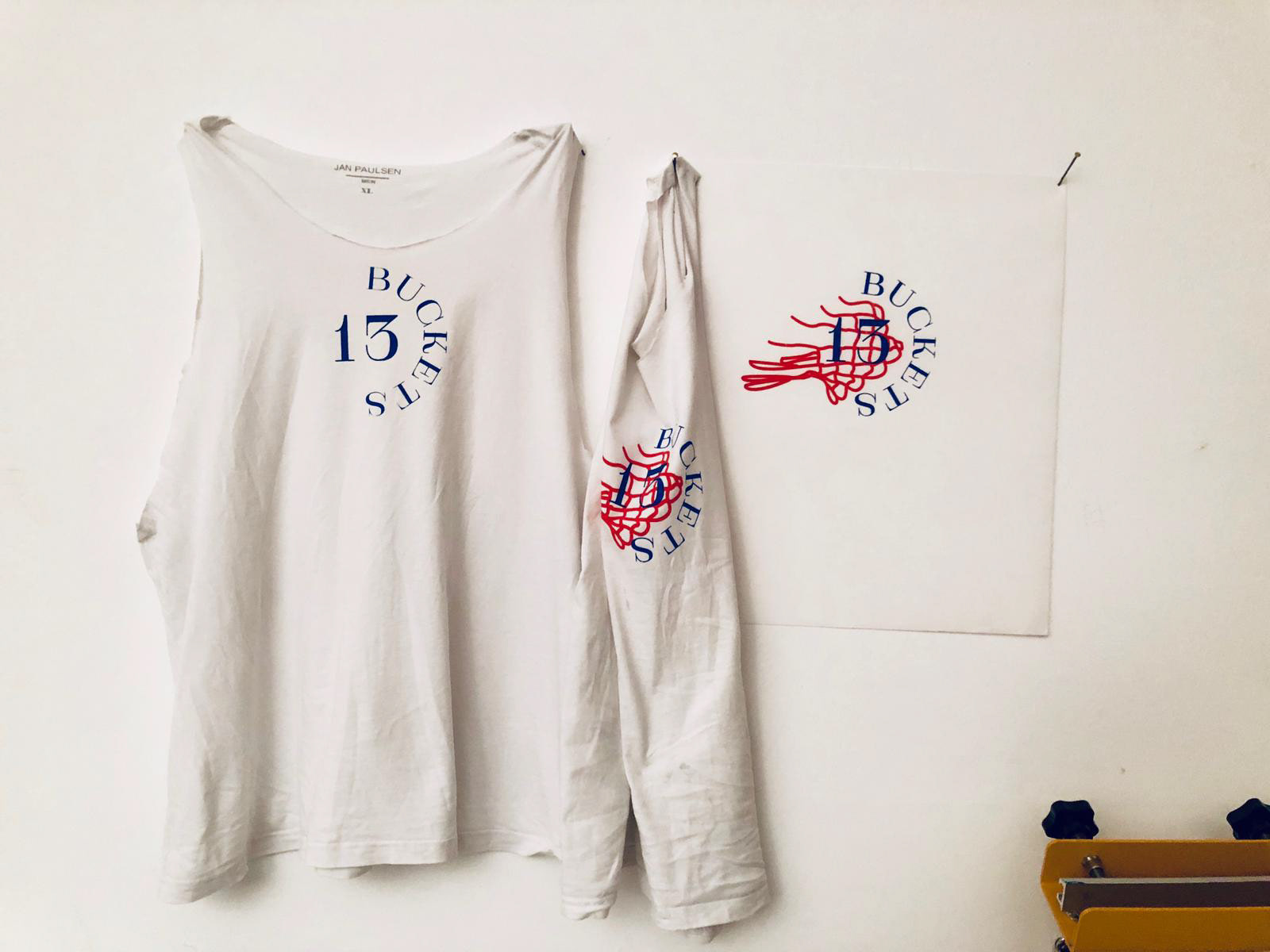 Basketball-themed screen prints on t-shirts, capturing the love for the game through playful designs.
